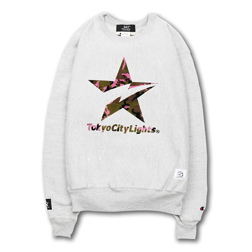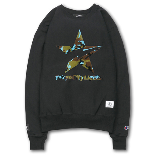 | COMMENTARY | 音楽カルチャーと密接な関係を持つ新進気鋭のブランド “Tokyo City Lights” とのコラボアイテム。 グラフィックのカモフラ柄を植毛フロッキーで表現し、部分的に蛍光色を採用した別注カラー。 ボディはUSコットンを使用したUSA Champion社のリバースウィーブトレーナーを使用。 USA企画ならではのゆとりのある身幅と腕まわりが広めに作られたシルエットも特徴。 |