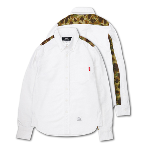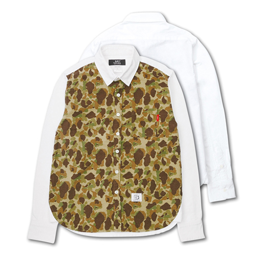 着込む程に味が出るアメリカンオックスにカモフラ生地で遊び心をプラスしたボタンダウンシャツ。 程良い洗い加工を施した使い勝手の良いアイテム。