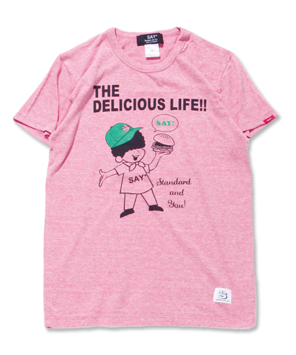コミカルなオリジナルキャラ “AFRO君” をプリント。 コットン・ポリエステル・レーヨンの混紡素材を使用した柔らかい素材が心地良いS/S TEE。