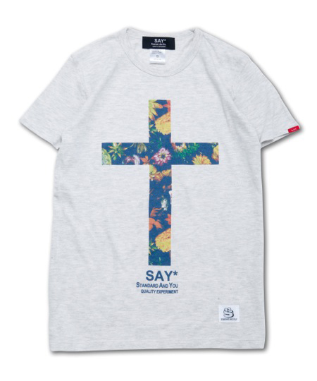 COMMENTARY花でクロスを象ったグラフィックをインクジェットプリントで表現。 コットン・ポリエステル・レーヨンの混紡素材を使用した柔らかい素材が心地良いS/S TEE。