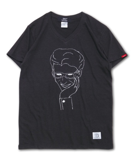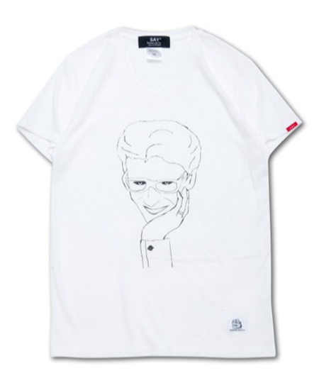 COMMENTARY某有名デザイナーへのオマージュを込めた手描きによるグラフィック。 コットン・ポリエステル・レーヨンの混紡素材を使用した柔らかい素材が心地良いVネックS/S TEE。